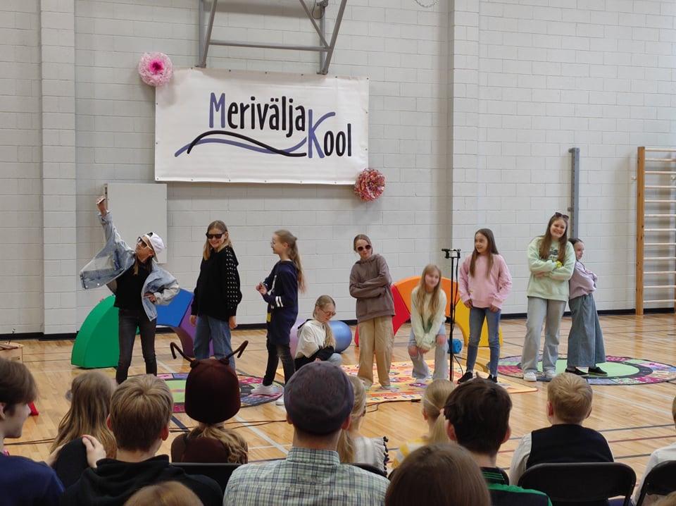 Täna on Merivälja Kooli 9. klasside õpilastel viimane tavaline koolipäev. 1. ja 4. klasside õpilased õpetaja Anita ja õpetaja Maiki ning muusikaõpetaja Kaie eestvedamisel tegid hommikul lõpetajatele ägeda ja värvika ülevaate nende möödunud kooliaastatest.