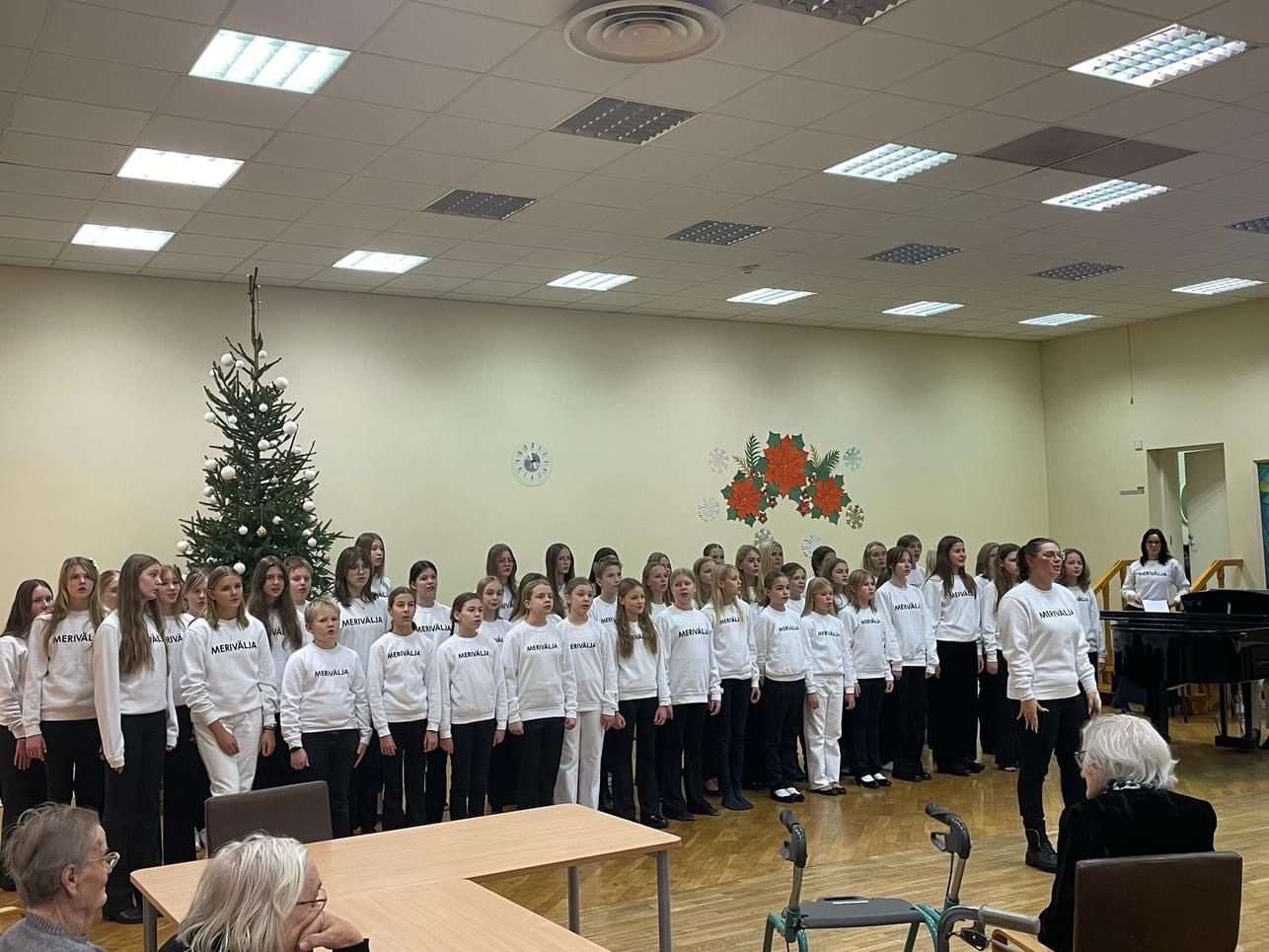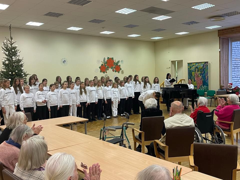 Merivälja Kooli mudilaskoor ja lastekoor käisid täna Merivälja Südamekodus oma traditsioonilist jõulukontserti andmas. Kokku käis eakaid rõõmustamas umbes 100 last, nende hulgas üllatusesineja õpetaja Marina Pokintšereda. Kooride juhendajateks õpetajad Leelo Jaanimägi ja Kaie Kodres.