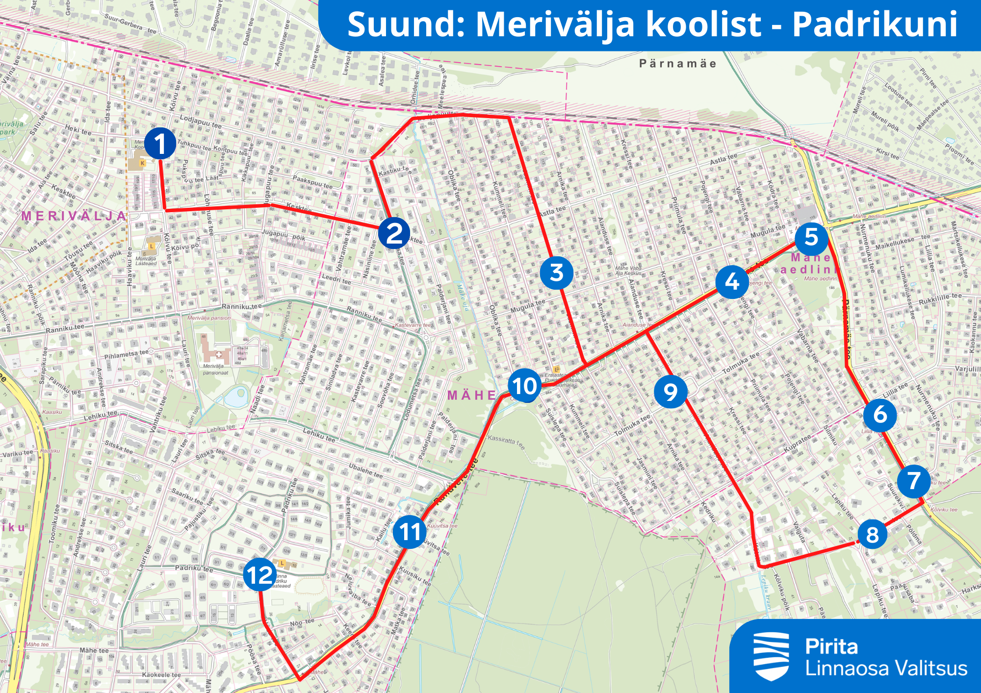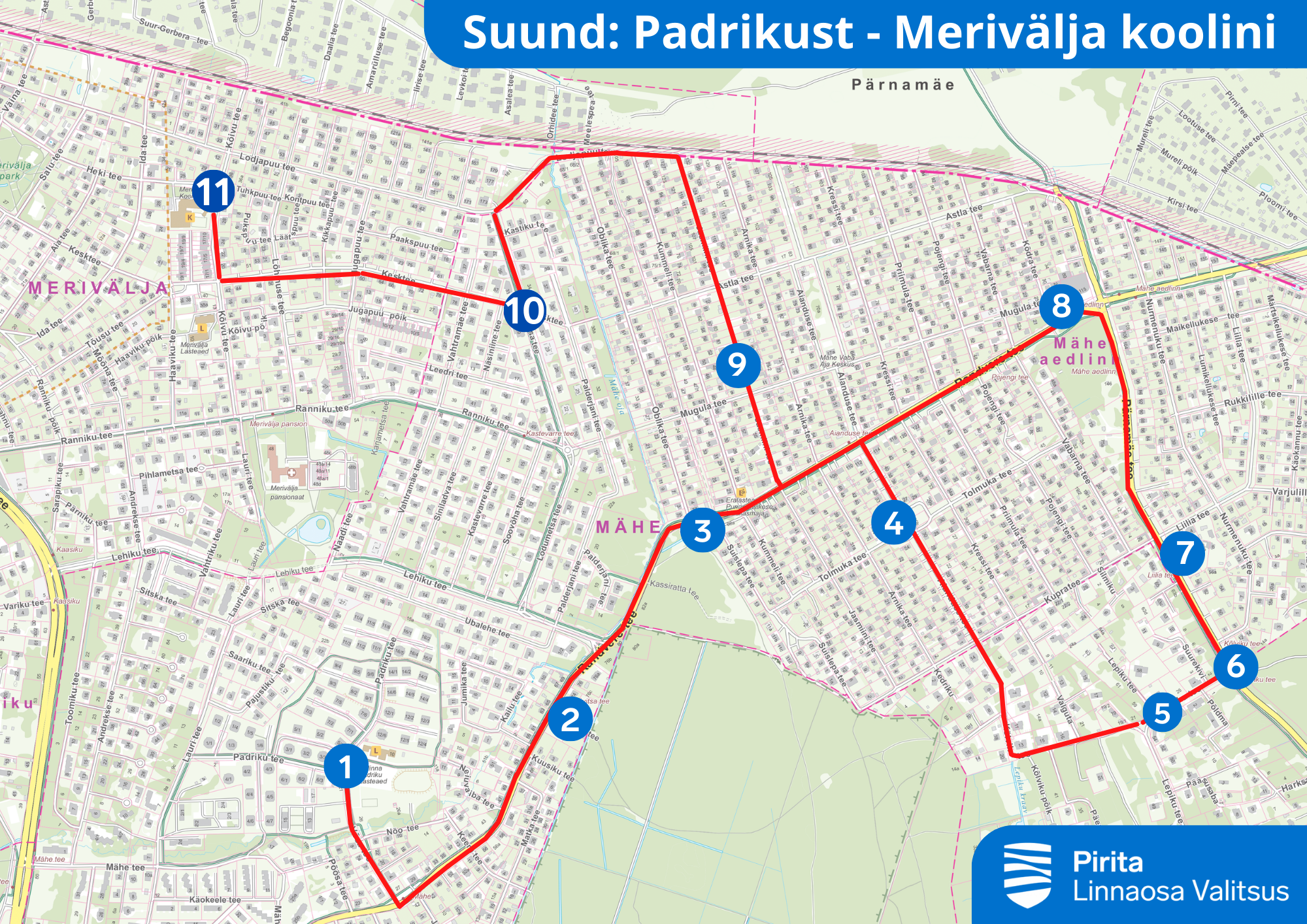 Pirita Linnaosa Valitsuse ja Merivälja Kooli koostöö tulemusel sõitev buss tagab piirkonna lastele turvalise koolitee ja aitab vähendada transpordisaastet.
